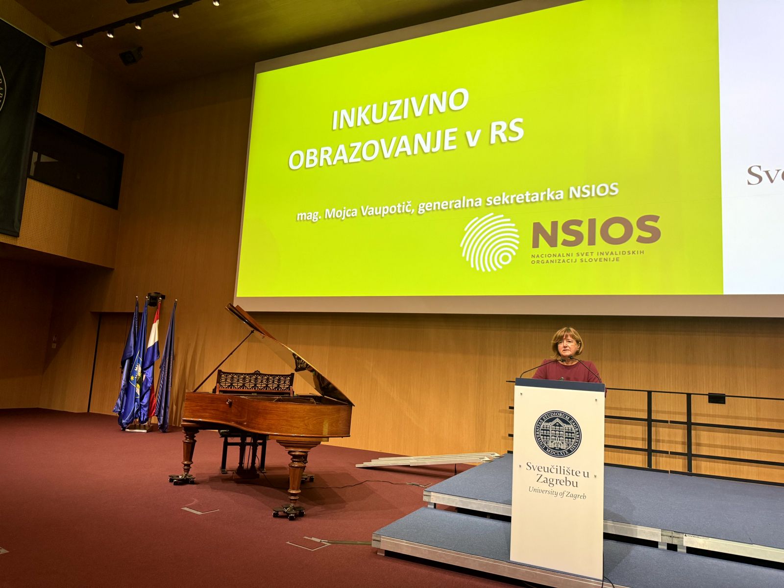 Mojca Vaupotič iz Nacionalnog sveta invalidskih organizacij Slovenije predstavila je primjer inkluzivnog obrazovanja u Sloveniji, naglašavajući važnost sustavnog pristupa koji omogućuje djeci i mladima s invaliditetom ravnopravan pristup obrazovanju. Istaknula je suradnju obrazovnih ustanova, roditelja i podržavajućih službi kao ključ uspješne inkluzije te potrebu stalnog osposobljavanja nastavnog kadra. Kroz konkretne primjere dobre prakse pokazala je kako prilagodbe nastavnih metoda i okruženja doprinose većoj samostalnosti, prihvaćenosti i uspjehu učenika s invaliditetom.
