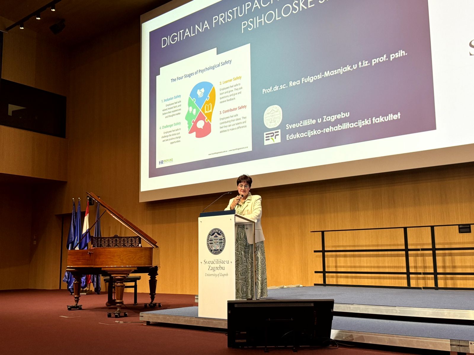 Rea Fulgosi Masnjak s Edukacijsko-rehabilitacijskog fakulteta Sveučilišta u Zagrebu predstavila je digitalnu pristupačnost kao ključni put do psihološke sigurnosti, naglašavajući kako pristupačne digitalne platforme ne samo da omogućuju funkcionalnu upotrebu za osobe s invaliditetom, već i značajno jačaju njihovo samopouzdanje i osjećaj autonomije. Objasnila je da kada digitalni sadržaji, alati i usluge budu osmišljeni s univerzalnim dizajnom i prilagodbama, korisnici osjećaju veću kontrolu i sigurnost pri svakodnevnoj interakciji, što direktno doprinosi njihovom osjećaju uključenosti i participacije u društvu. Također je istaknula da digitalna pristupačnost potiče aktivno sudjelovanje u obrazovanju, radu i društvenom životu, čime se smanjuju barijere i stvaraju ravnopravnije mogućnosti za sve korisnike.